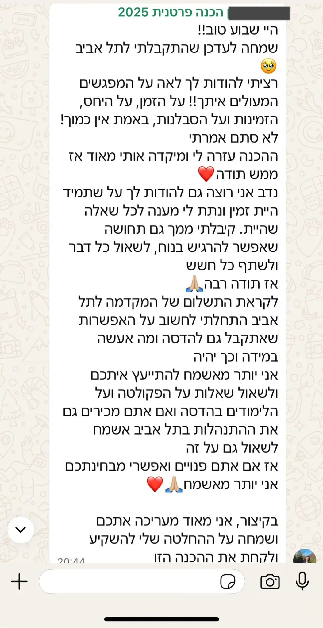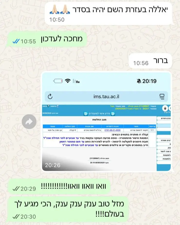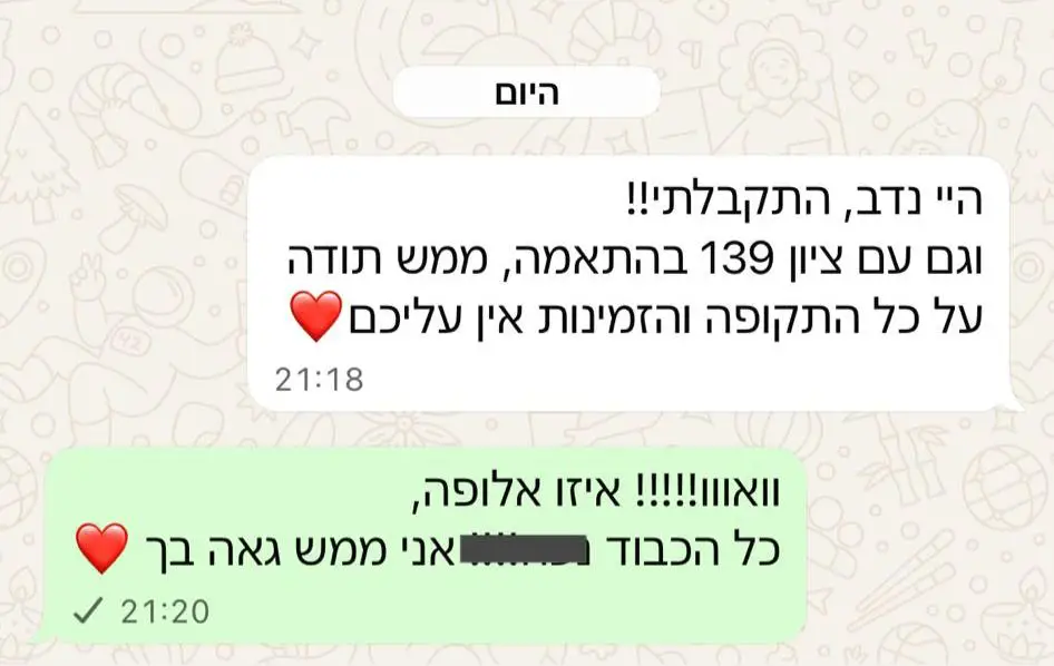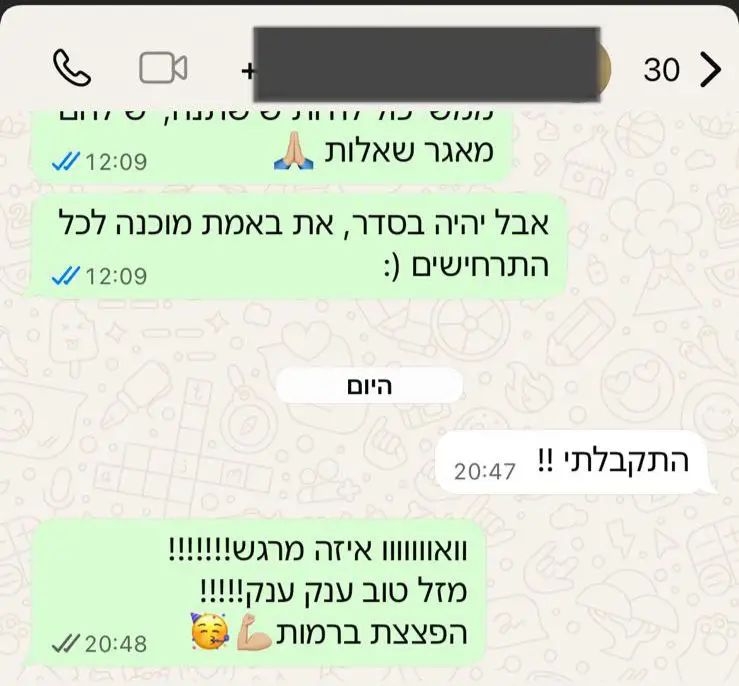 בנוסף , אנו ההכנה היחידה שנותנת ליווי ארוך טווח ואיכותי, ממש לא מסתפקים בכמה מפגשים בודדים ונפרדים לשלום. כל מועמד אצלנו מקבל חונך אישי שיידע להכיר אותך לעומק ולהכווין בדיוק לצרכים שנכונים לך.