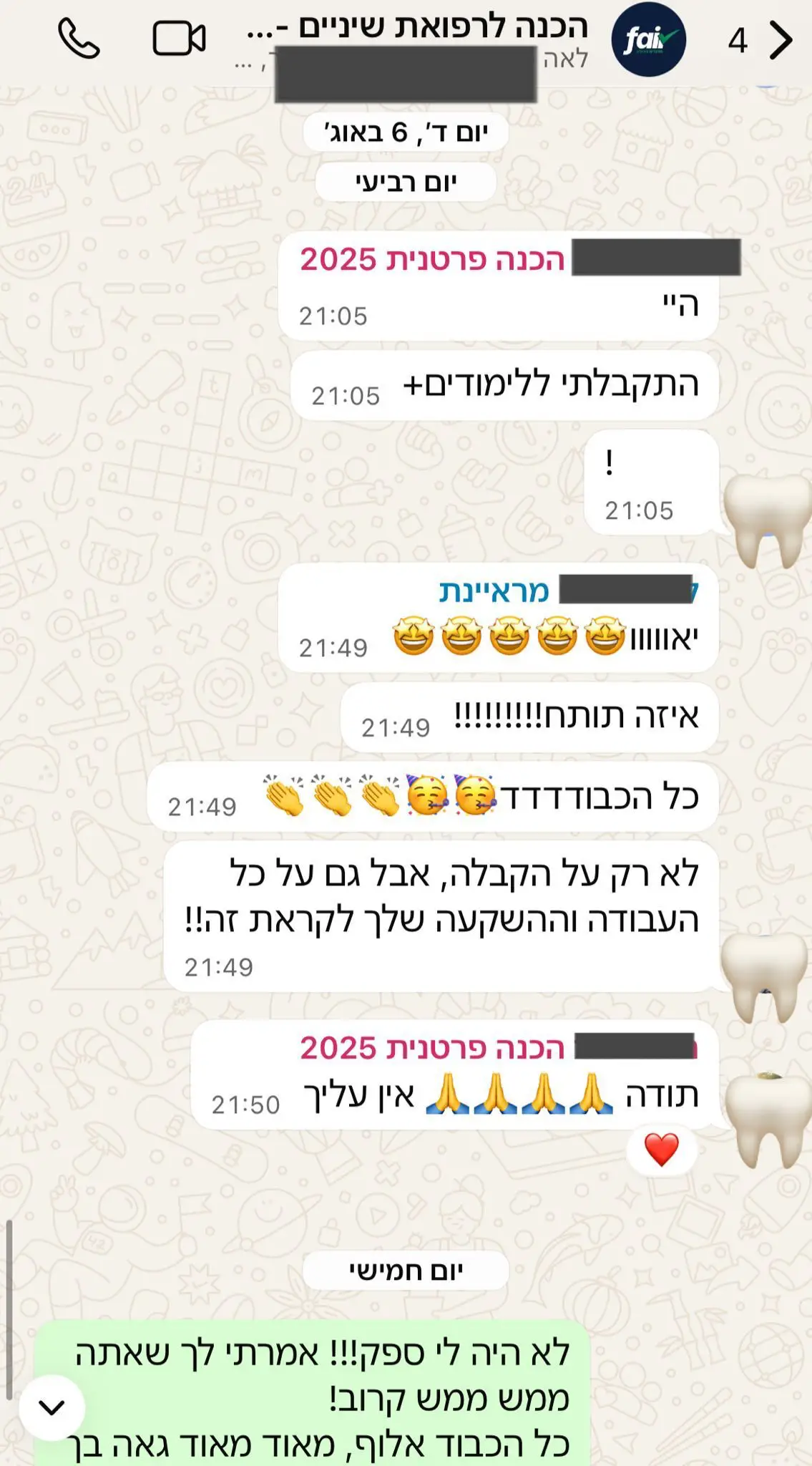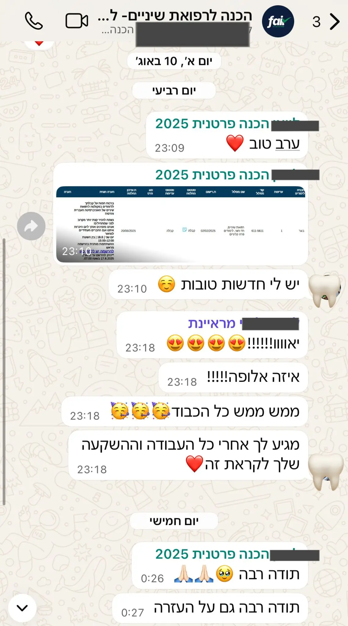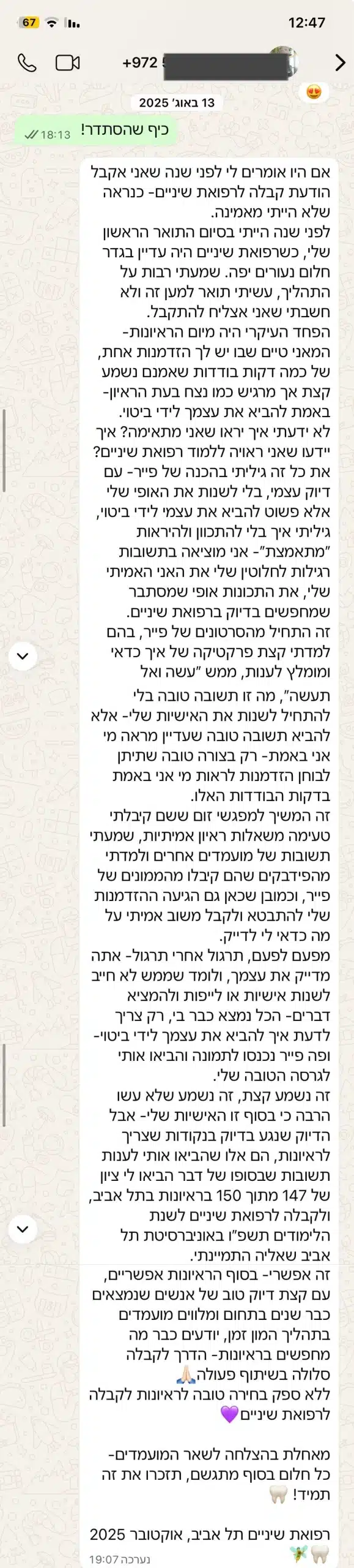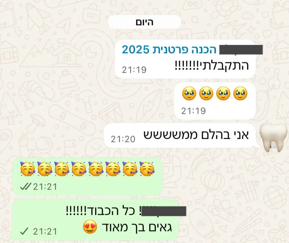 פייר פעילה מזה שש שנים ומתגאה באחוזי קבלה של 93% לרפואת שיניים. היה לנו הכבוד ללוות למעלה מ 300 מועמדים וכמעט כולם התקבלו.