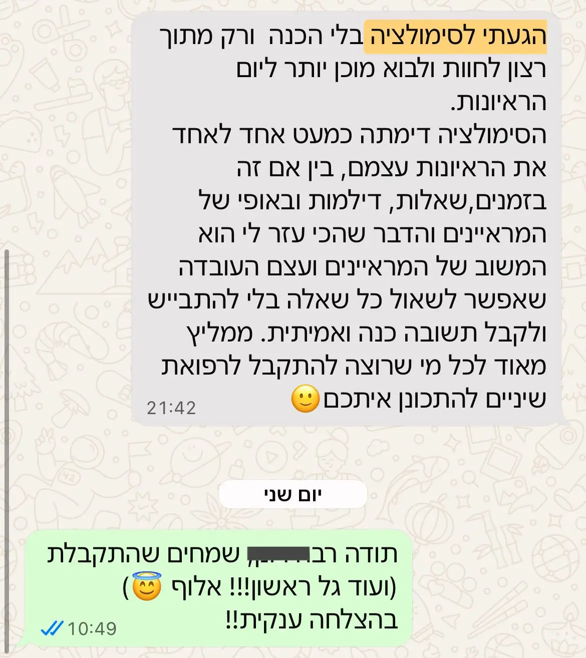 פייר , הדבר שאנו הכי מתגאים בו הוא יום הסימולציה שלנו. אנו מזמינים אתכם להתנסות בדבר הכי קרוב שיש לתחושה שתהיה לכם בראיונות עצמם
